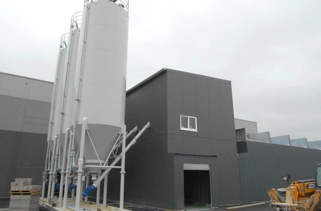 Centrale à béton neuve pour la préfa de type horizontale avec trémies en lignes à Saint-Aubin sur Gaillon (Eure)