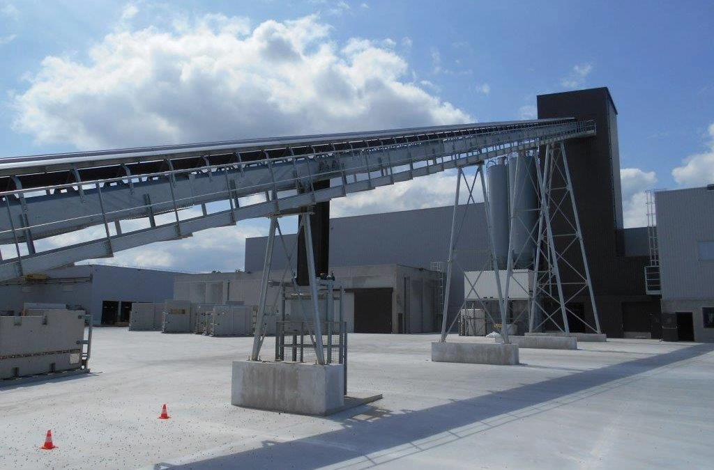 Description : Ensemble constitué d’un déchargeur camion 24 m3, un tapis de convoyage d’environ 80 m débit 250T/H, un tapis rotatif de distribution pour répartir dans les 4 cases de granulats (375 T au global) – un ensemble dosage/pesage des différents composants. Un malaxeur planétaire de 2m3 fini. Un poste de chargement des bennes et 3 silos ciment de 78 m3 unitaire.