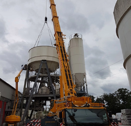 Silos monoblocs de 20 à 600 m3 (jusqu’à 5,5 mètres de diamètre par la route et jusqu’à 7 m par voie d’eau), en acier carbone ou inox :